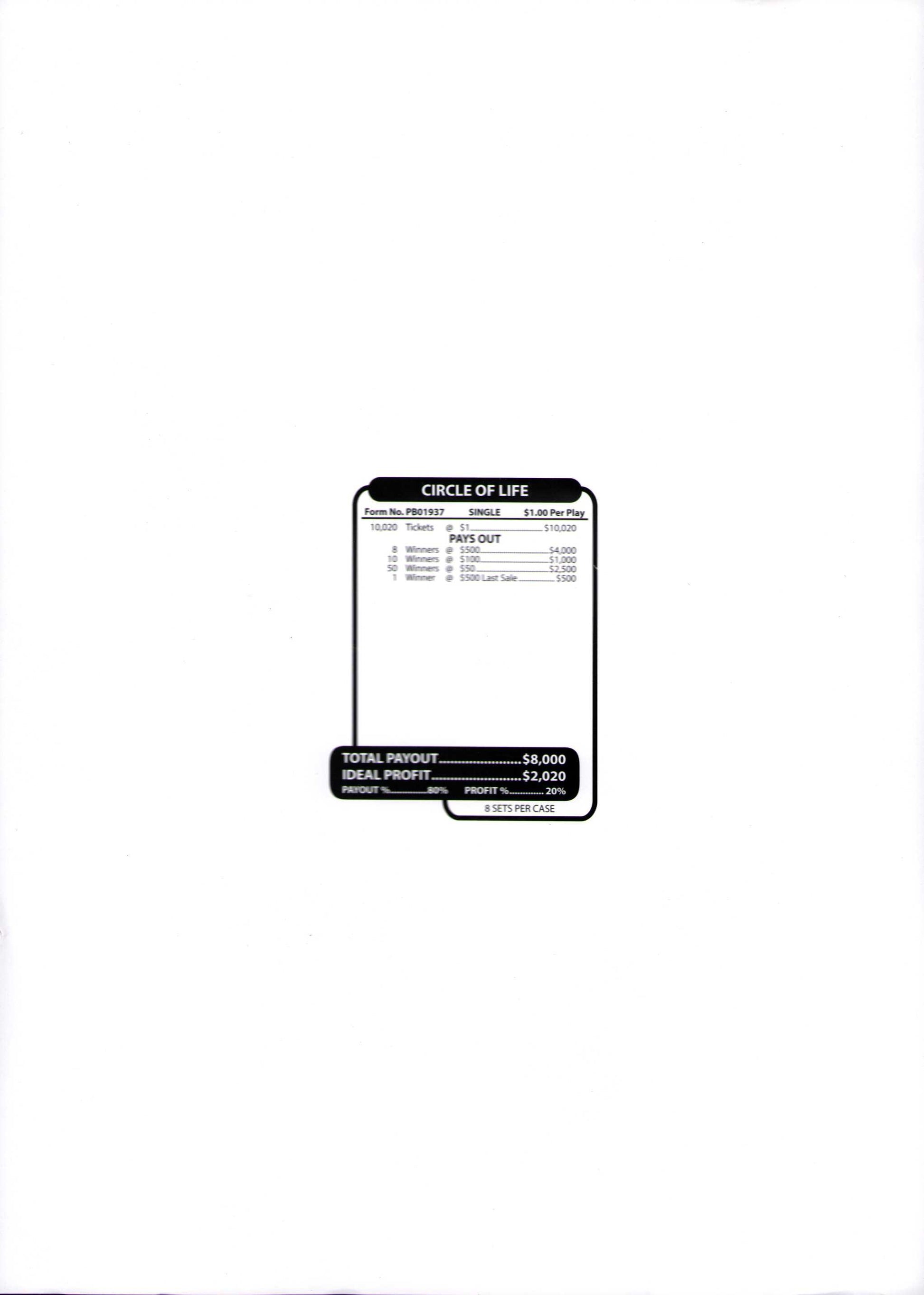 CIRCLE OF LIFE 10,020 ct Jar Ticket