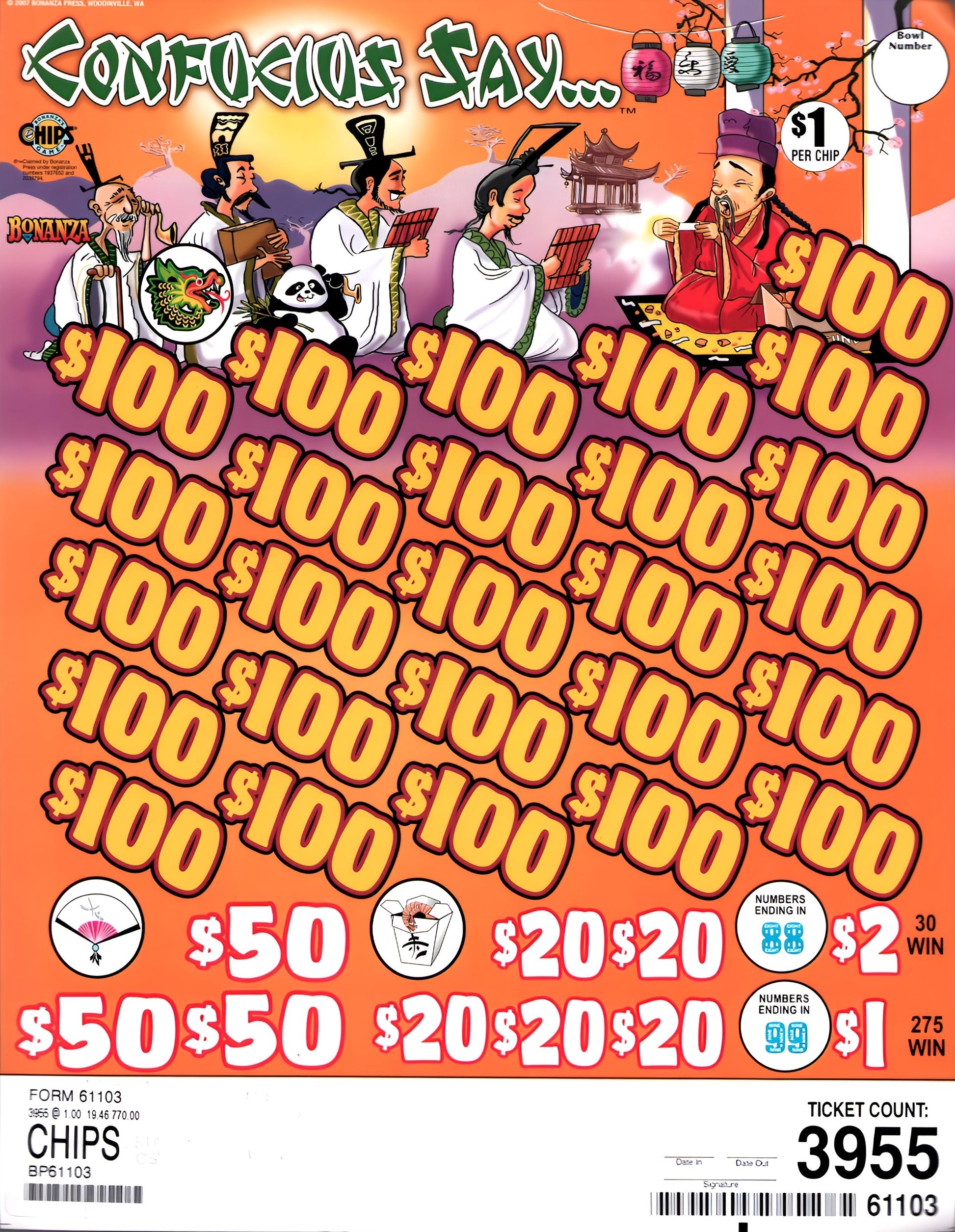 Pull Tab Chip Ticket
