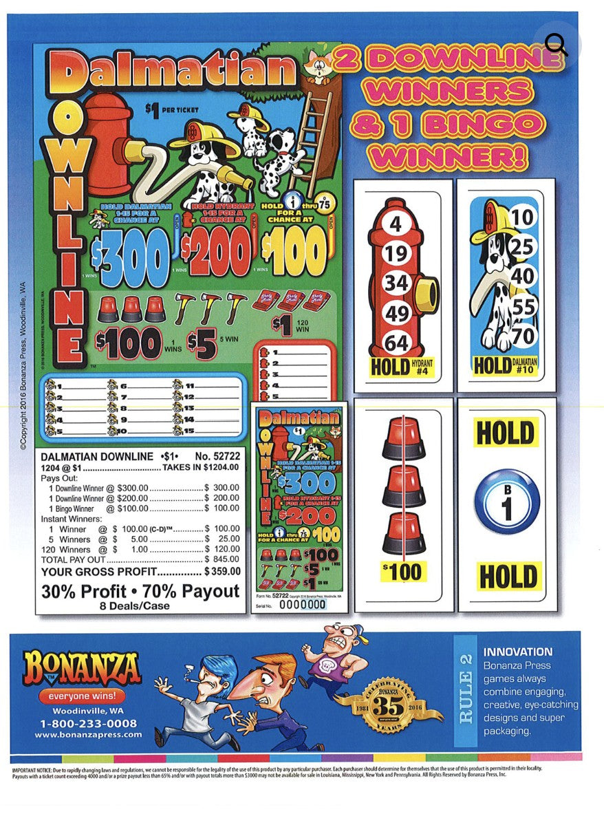 DALMATION DOWNLINE 1,036 ct Pull Tab Ticket