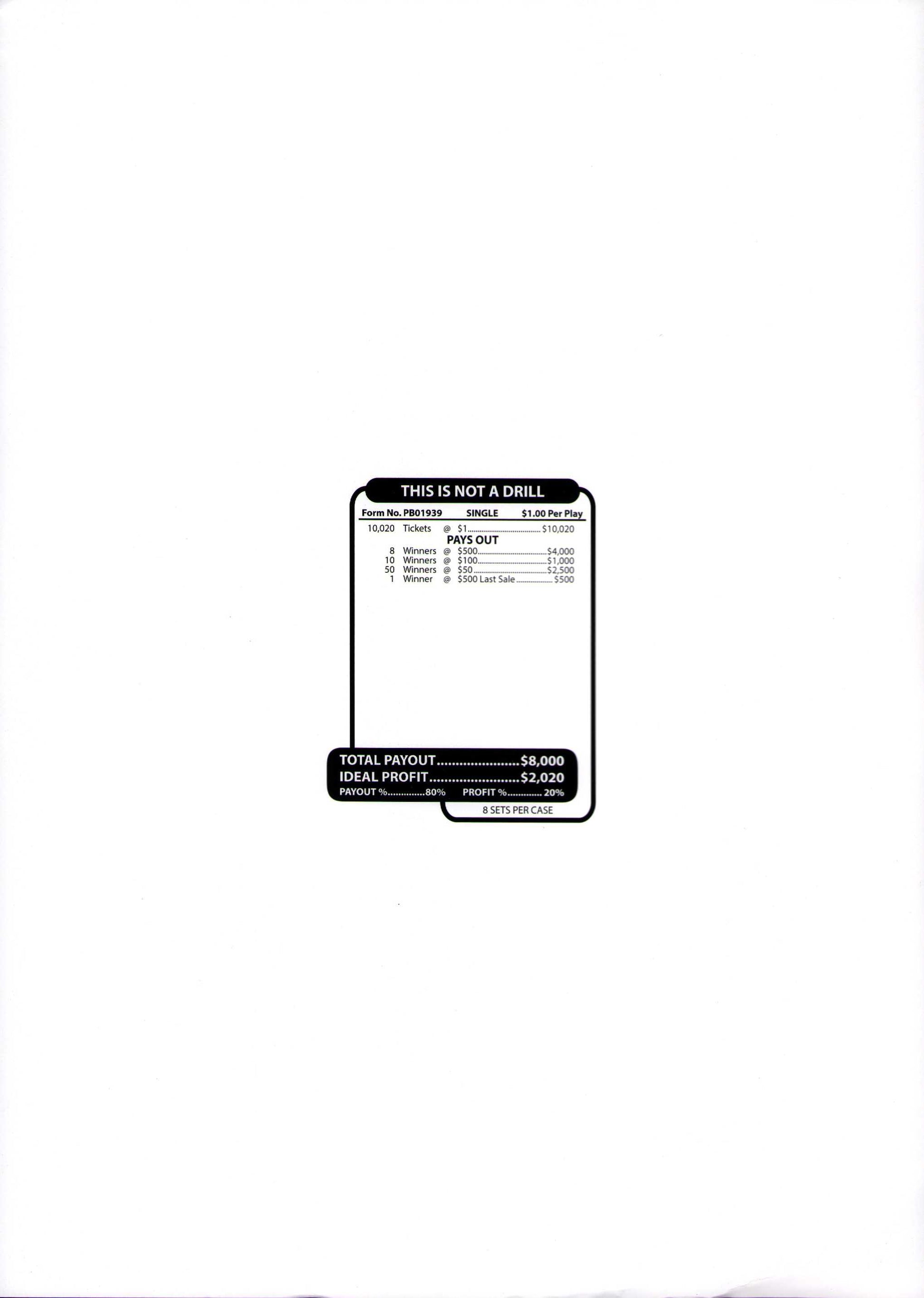 THIS IS NOT A DRILL 10,020 ct Jar Ticket